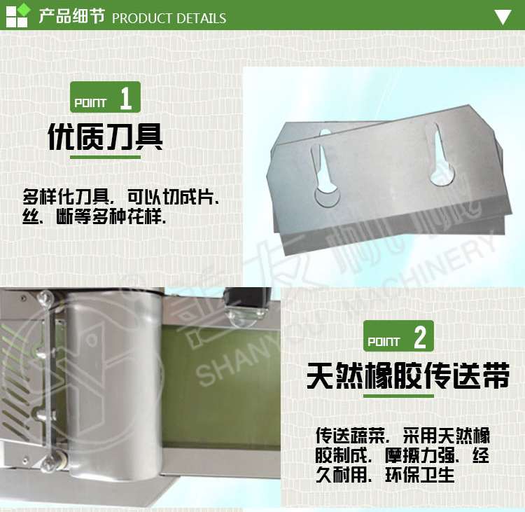 善友牌切菜机又称:切菜设备,切丝机,切丁机,多功能切菜机,商用切菜机,切片机。